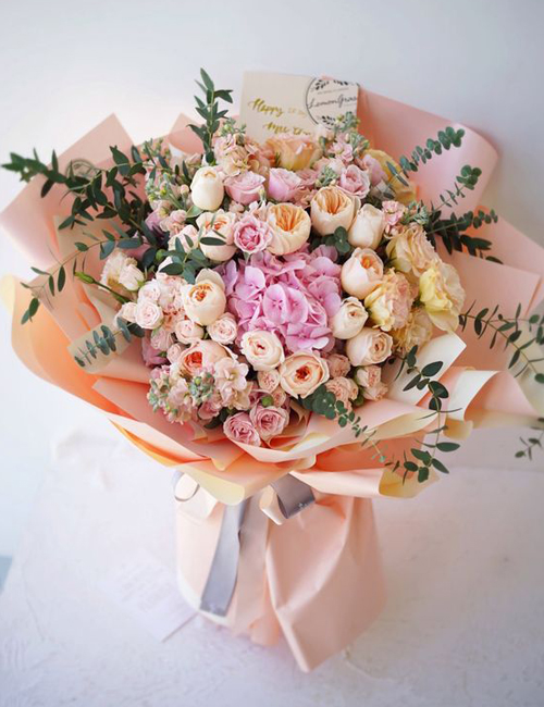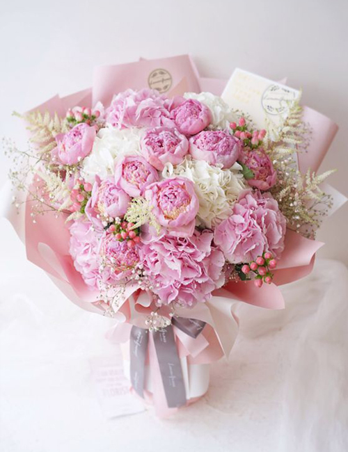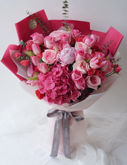 Buchetul include trandafiri, hortensii si bujori. Este ideal pentru momentele pline de romantism, in care vei vrea sa o cuceresti instant.